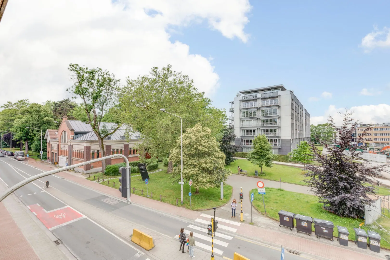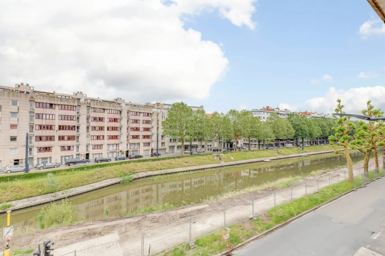 Aangename omgeving aan het Groenevalleipark en Jan Van Hembysebolwerk, parkzone met nieuwe fietsonderdoorgang.