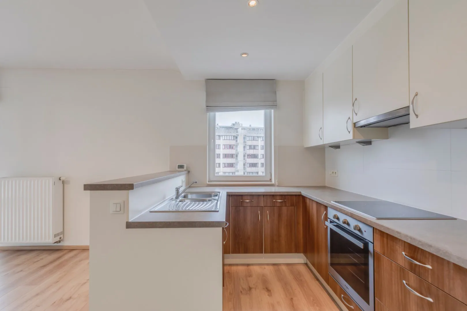 Een open uitgeruste keuken, voorzien van vitrokeramische kookplaat, een vaatwas, een oven van Whirlpool, inbouwkasten, spots,...