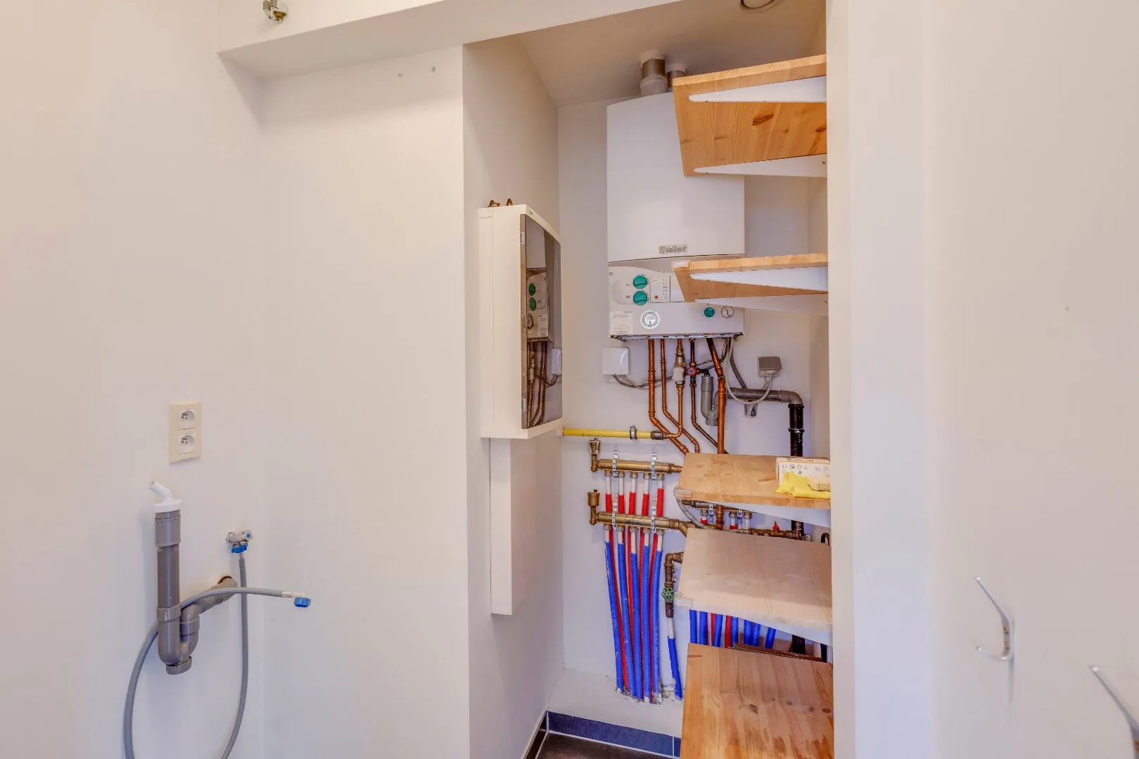De bewoonbare oppervlakte 80m² is verdeeld over inkomhal, (was)berging, toilet, een lichtrijke leefruimte met eethoek en zithoek voorzien van vouwgordijnen en aansluitend balkon en borstwering met veiligheidsglas.