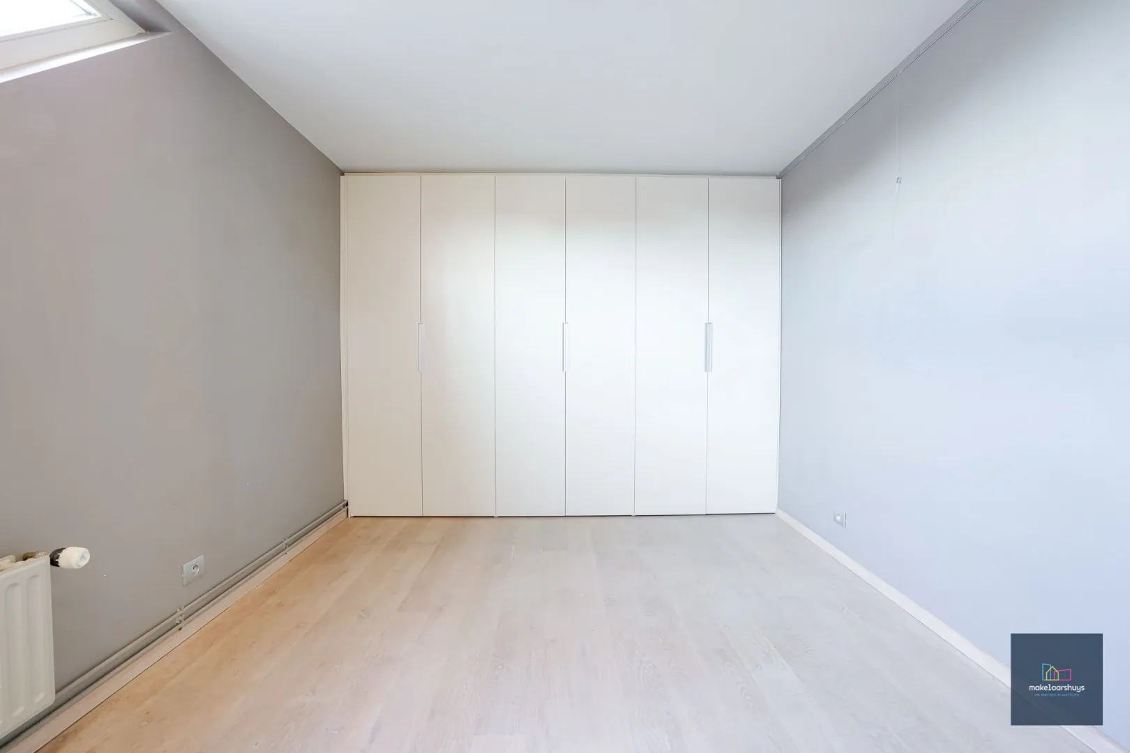 Bij het binnenkomen is er een polyvalente ruimte en aansluitend 2 ruime kamers, waarvan op heden 1 dienst doet als slaapkamer met inbouwkasten en 1 als bureau/logeerkamer met mooi zonneterras.