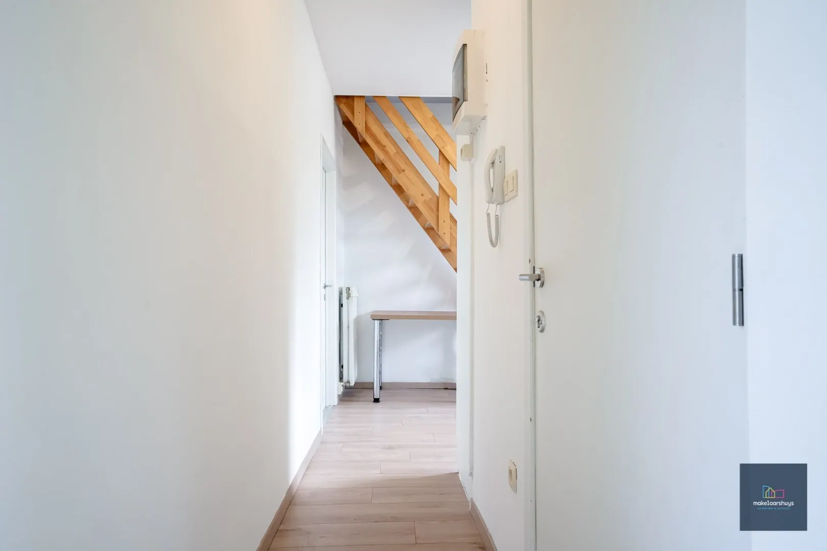 Via de algemene inkomhal bereikt u via de trap ( geen lift) het ruim 3 slaapkamer dakappartement (84m²) welk zich bevindt op de 2de verdieping van een kleinschalige residentie.