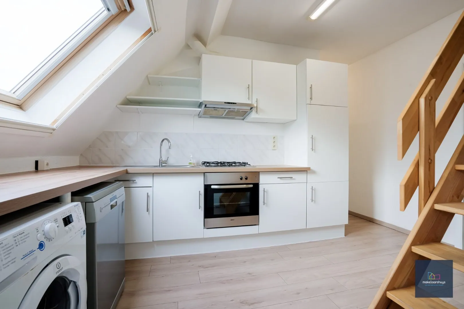 De recente en verzorgde keuken met toestellen deze is voorzien van een kwalitatief gasvuur, een oven, een vaatwasser, een wasmachine en heeft voldoende opbergkasten.