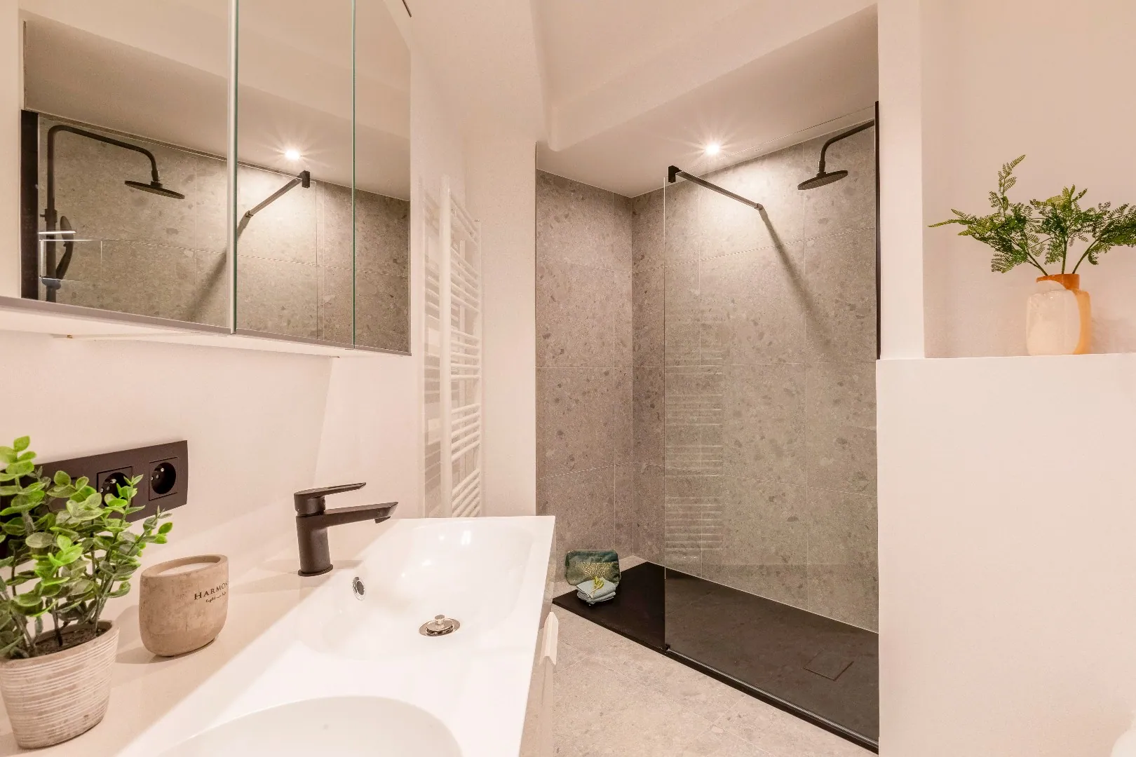 Er zijn 3 slaapkamers waarvan 1 zeer ruime en 2 kleinere kamers en een ruime badkamer met dubbele lavabo, regendouche en toilet.