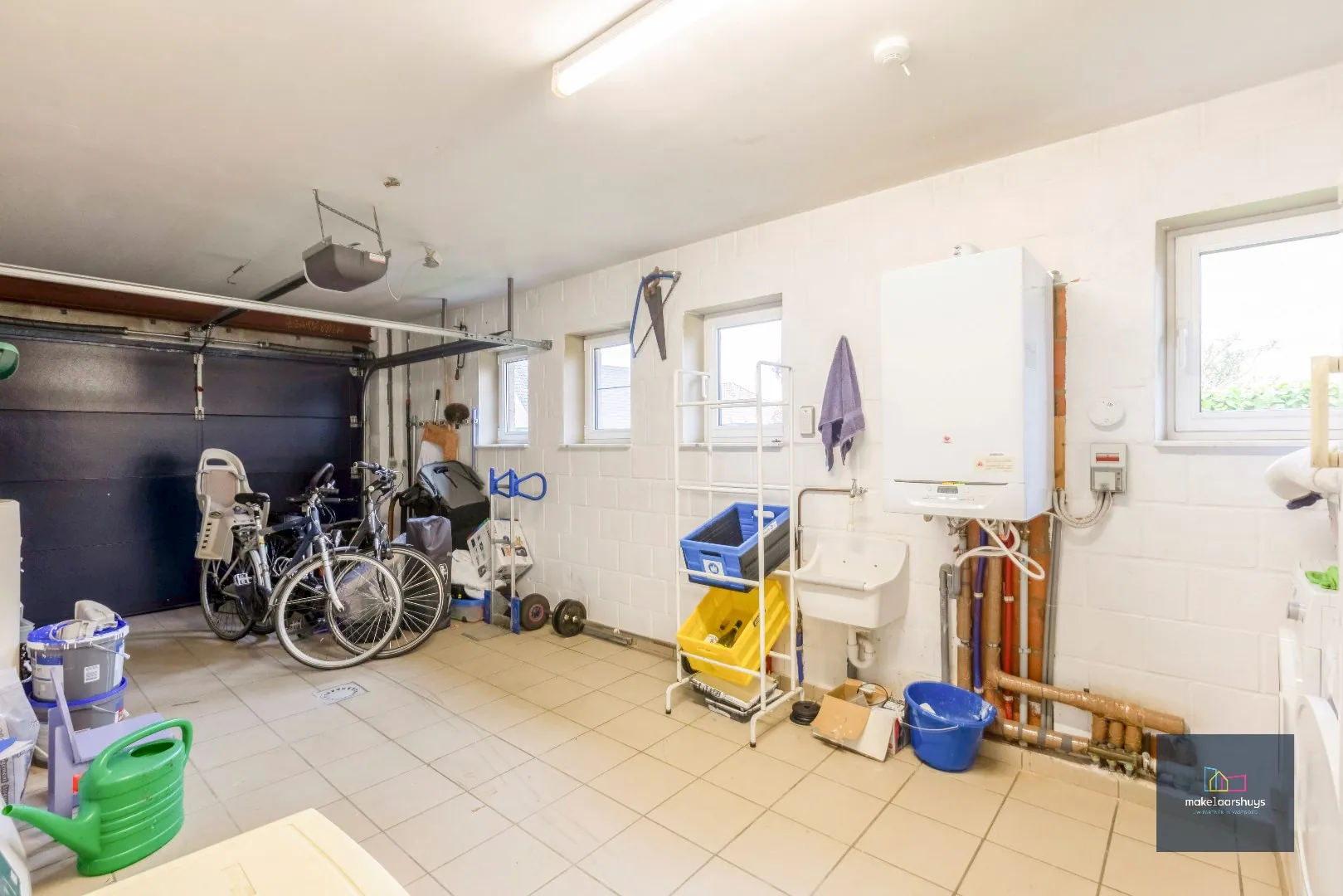 De inpandige garage heeft voorzieningen voor wasmachine.
