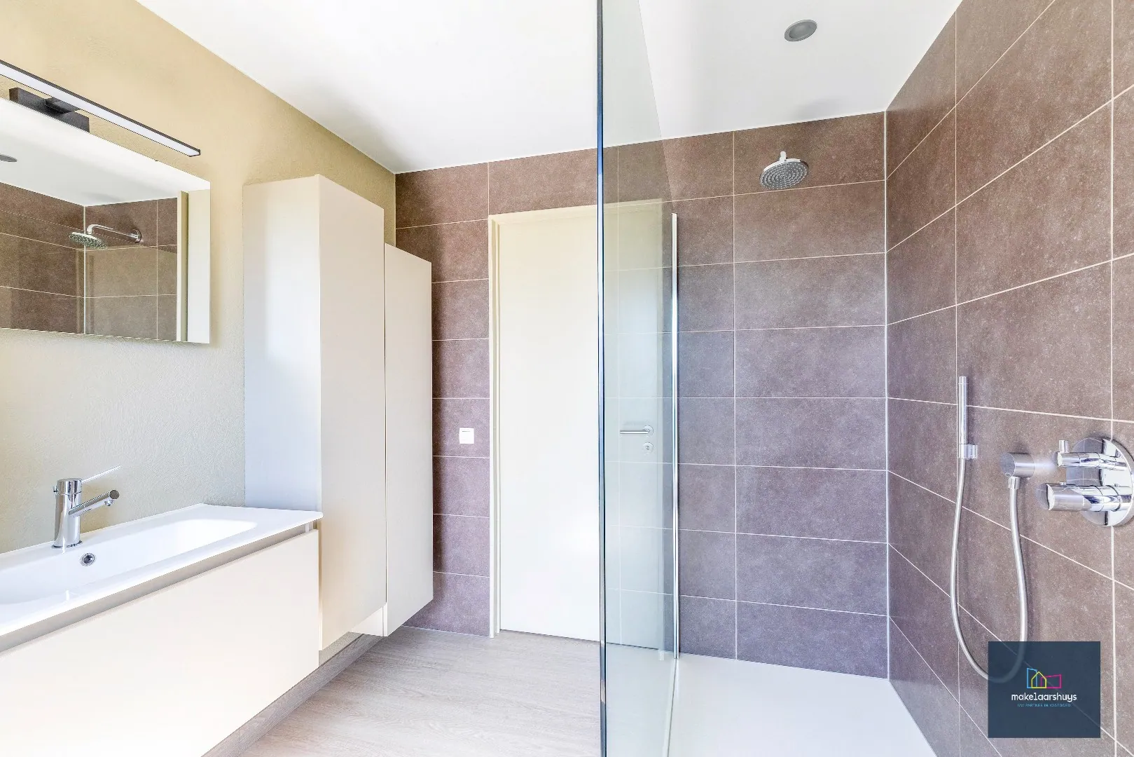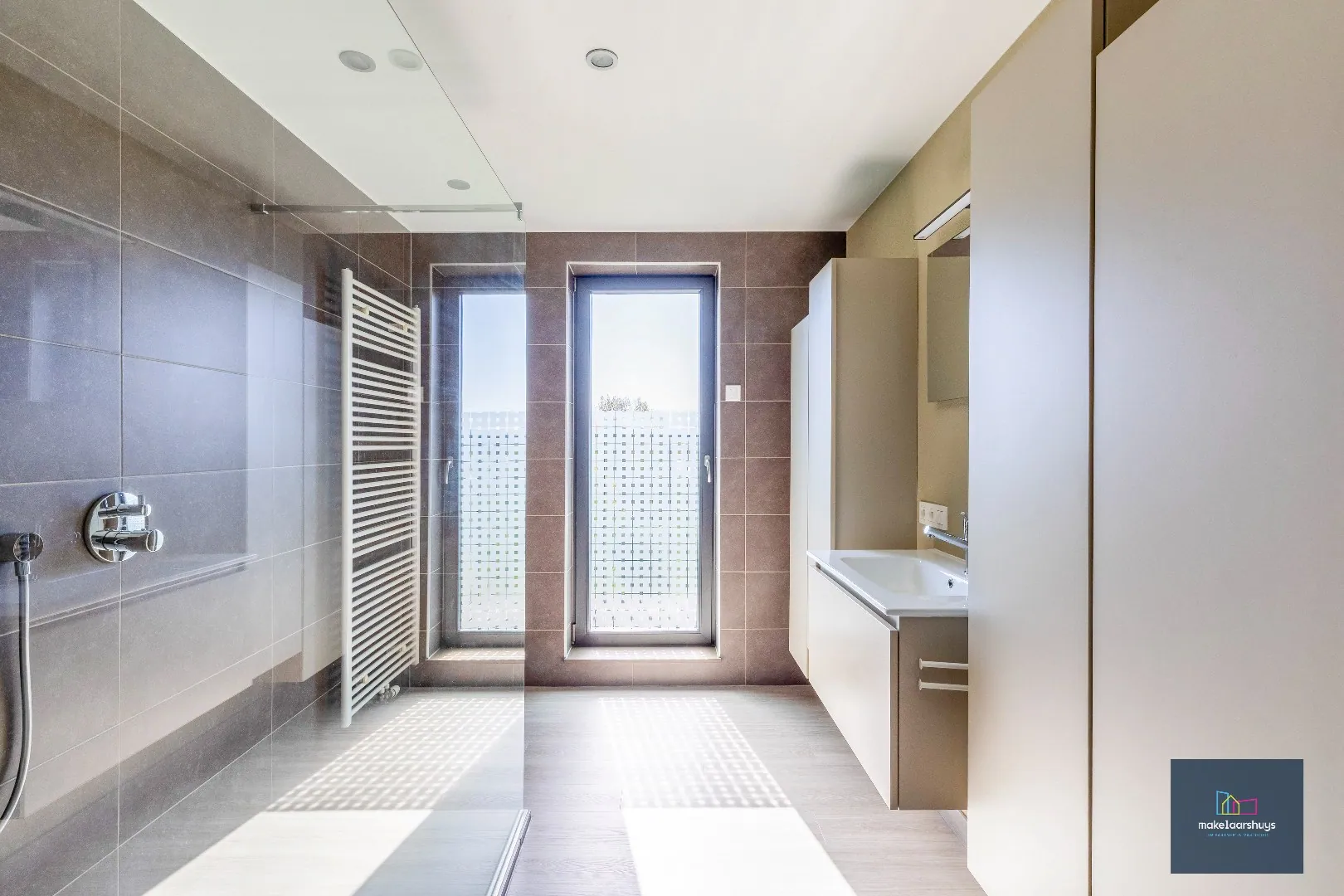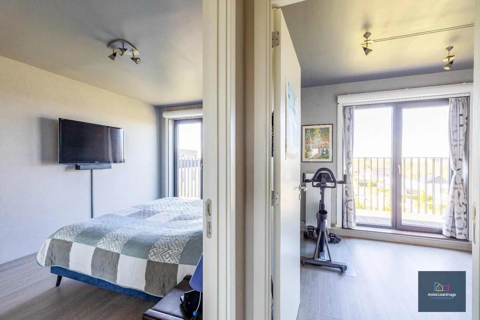 Het appartement beschikt over twee volwaardige slaapkamers en een ruime badkamer met inloopdouche en lavabo.