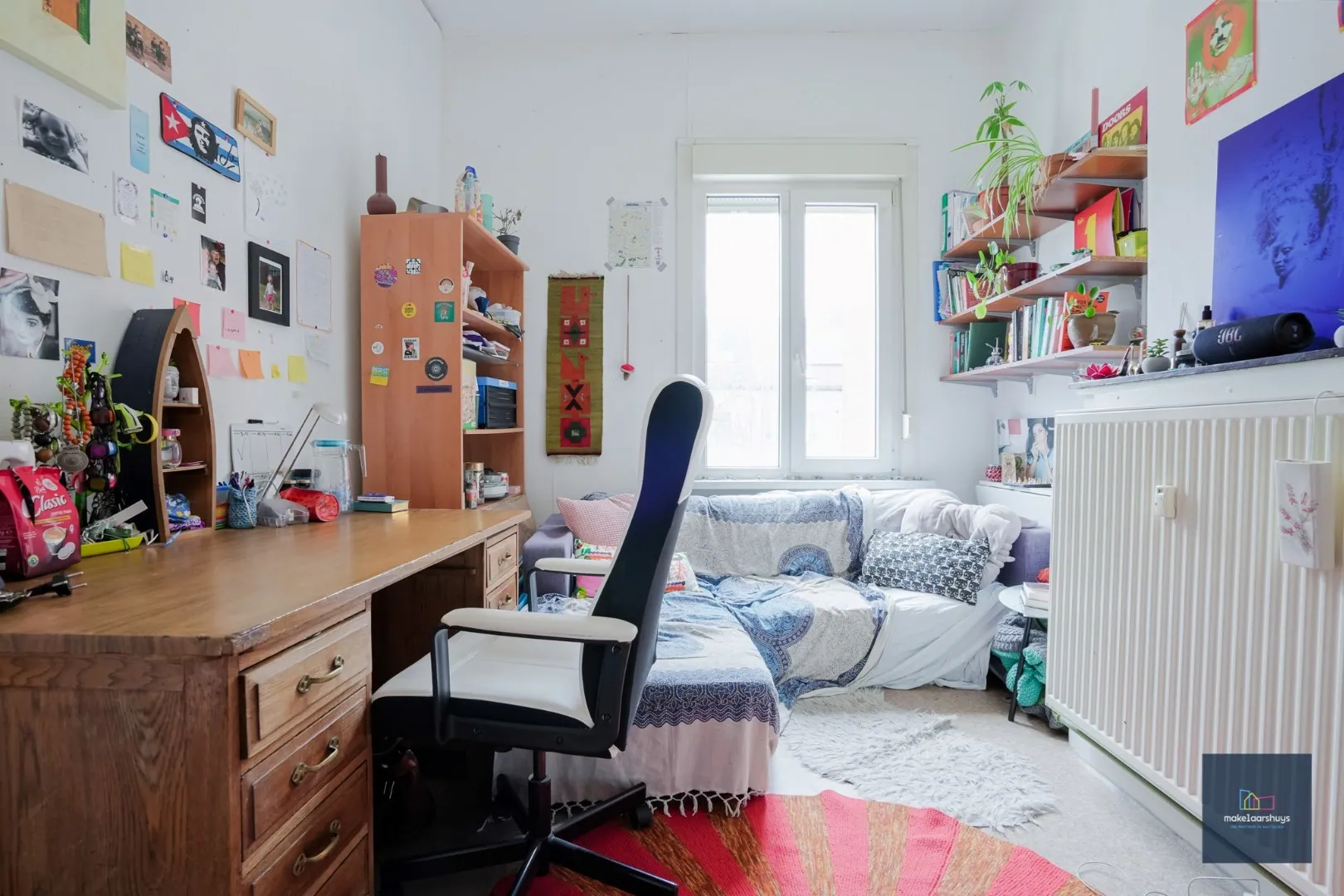 Op de 2de verdieping opnieuw 2 ruime kamers met gemeenschappelijk sanitair.