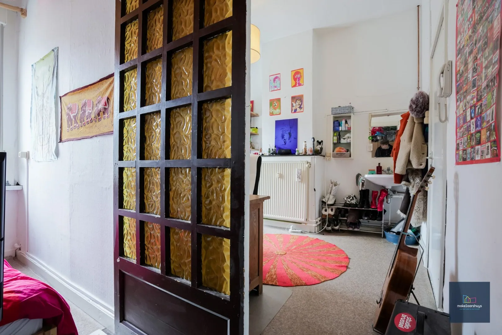 Algemene inkomhal, vooraan rechts een eerste lichtrijke kamer met raamzicht op de straatzijde