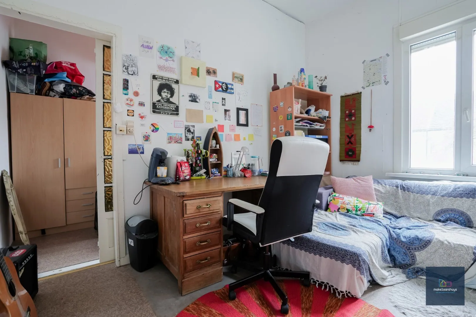 Aan de achterzijde heeft u de 2de kamer met toegang tot de tuin en tuinberging.