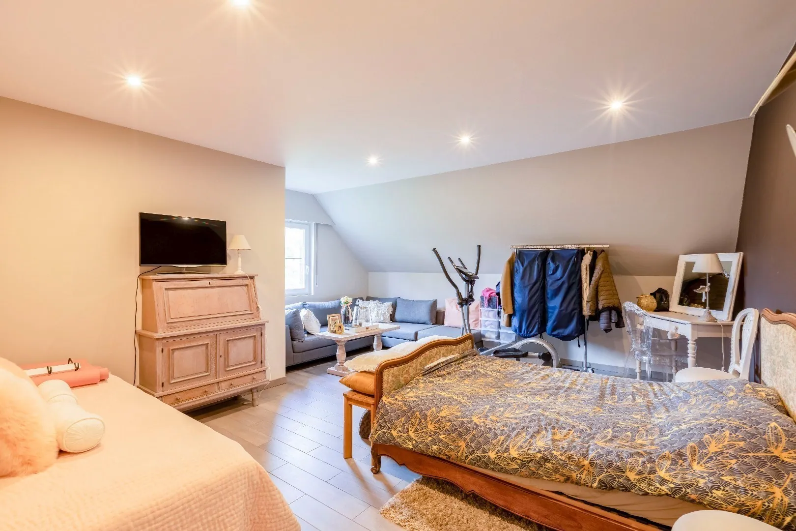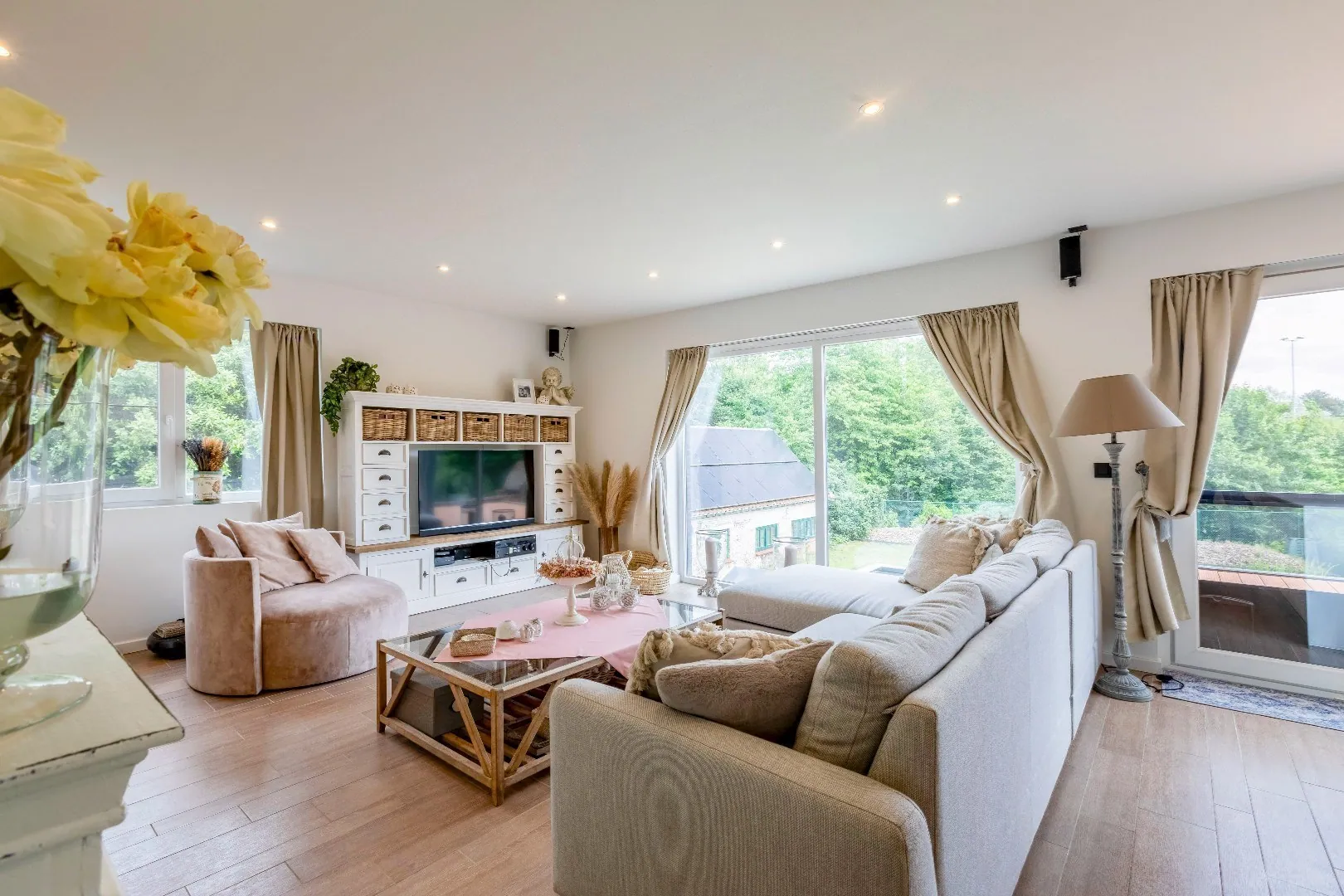 1ste verd. De ruime nachthal geeft toegang tot een royale leefruimte, opnieuw badend in licht.