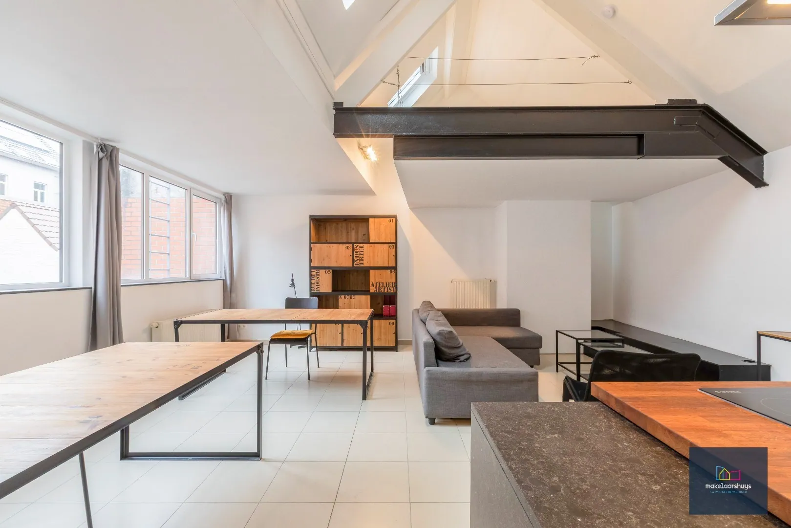 De bewoonbare opp. 64m² is verdeeld over inkomhall met ruimte voor vestiaire, een aparte ruime berging, een sfeervolle en lichtrijke leefruimte voor een eethoek, een zithoek , een bureau met mooie hoogtes. Een aangename open ruimte met ingerichte keuken met voldoende opbergkasten. Nieuwe inductiekookplaat 2022. Er is een aansluiting voor wasmachine.