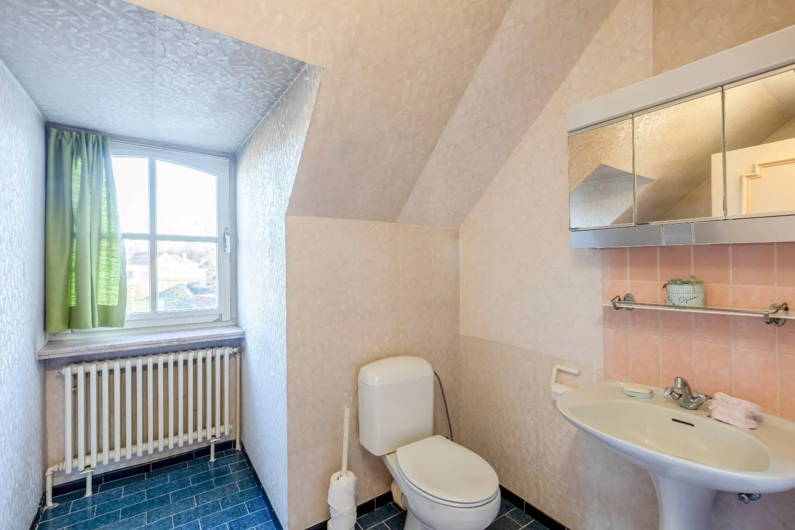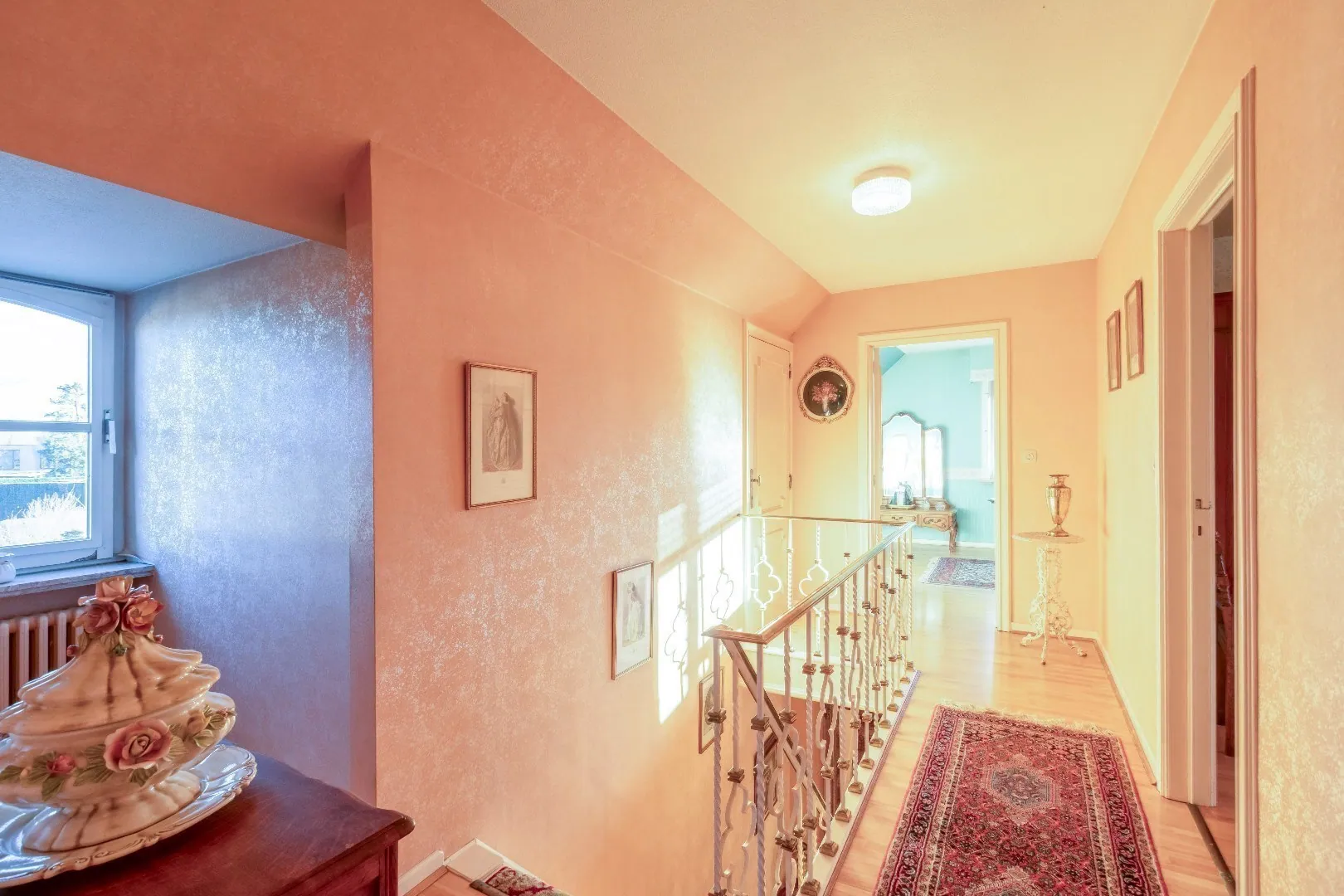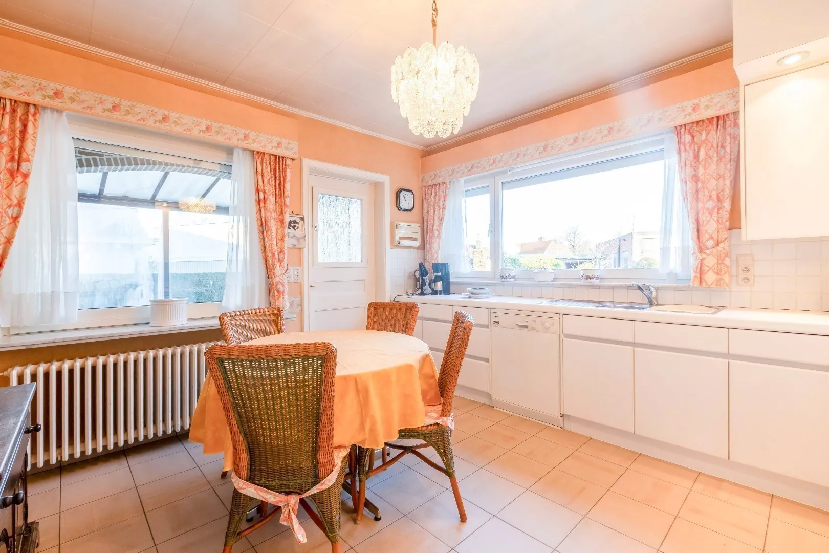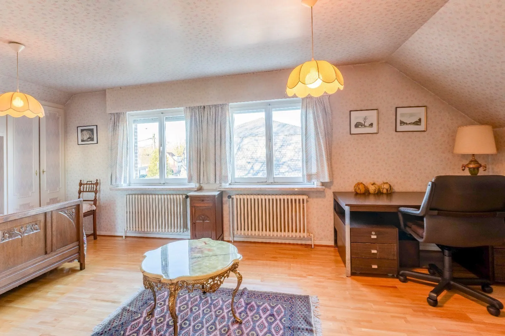 Deze eigendom werd gebouwd met degelijke materialen en heeft heel wat potentieel. Binnengekomen is er een ruime inkomhal met links daarvan de ruime en lichtrijke living (parket) met zit en eetplaats. Deze living staat in contact met de gesloten, functionele keuken met alle toestellen. De keuken heeft zicht op de tuin. Naast de keuken werd een veranda gebouwd die te bereiken is via de achterdeur. teruggaand naar de inkomhal is er rechts een bureauruimte in dezelfde stijl als de livingruimte. Verder is er op het gelijkvloers een ruime, 1ste slaapkamer met badkamer en afzonderlijk toilet. Achteraan de woning werden 2 ruime garages inpandig voorzien. Ook de aanwezigen droge kelder blijft een pluspunt. Bij het naar bovengaan via de algemene traphal komen we op een bordes waarin 4 ruime slaapkamers op uitkomen. op het verdiep is er ook nog een badkamer en een zolder terug te vinden. De oprit is doorgetrokken tot achteraan en dit tot aan de gemetste loods met voldoende hoogte Voor (kleine) zelfstandigen (bouwsector, tuinier, hobbyist, of zo …. De eigendom heeft heel wat potentieel en wacht op een nieuwe eigenaar. Interesse, mail of bel gerust. alain@makelaarshuys.be - 0468 25 48 91