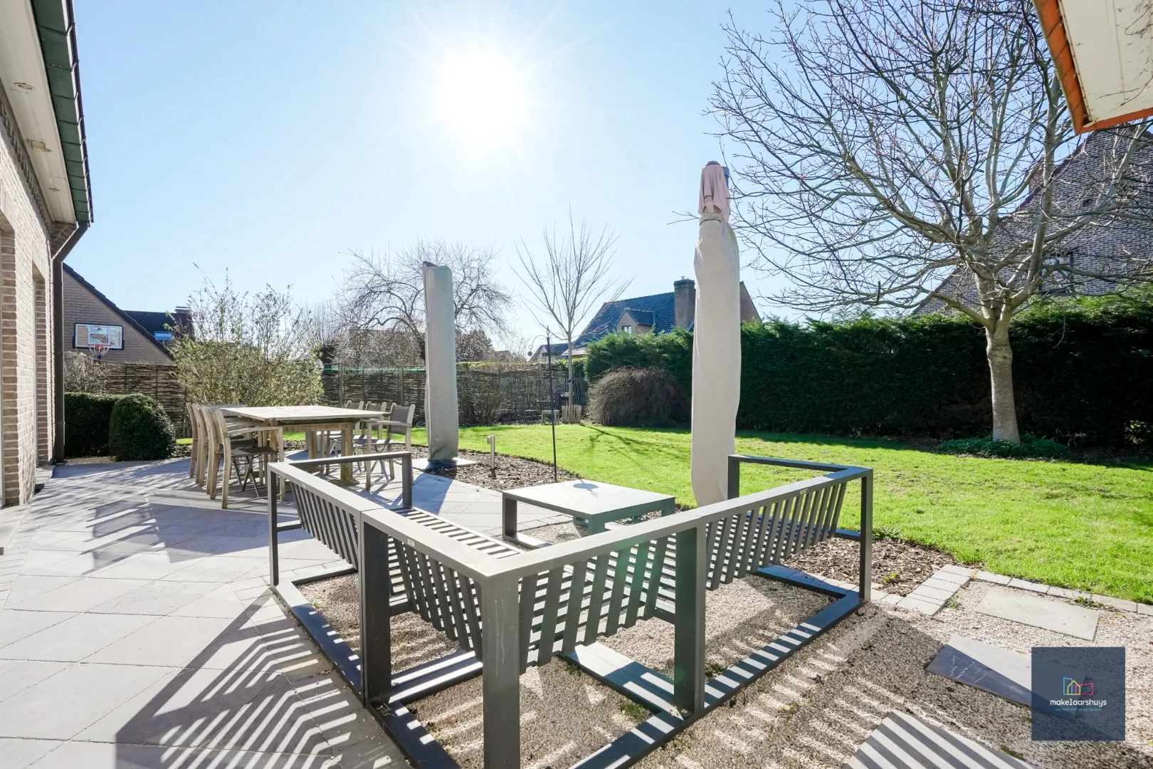 De aangelegde tuin met zonneterras vormt een heerlijke plek om in alle rust te genieten. De ligging is ideaal: rustig en residentieel, met winkels, scholen, openbaar vervoer en natuur op korte afstand.