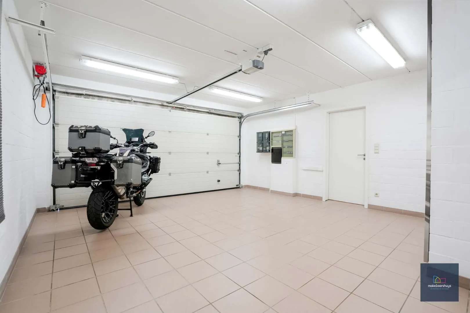 Via de inkomhal met gastentoilet komt u in de lichtrijke leefruimte met grote raampartijen en een aangenaam zicht op zowel de straat als de tuin. De gesloten, volledig ingerichte keuken beschikt over de nodige toestellen en voldoende werk- en bergruimte. Aansluitend bevindt zich een ruime berging die doorloopt naar links richting carport en naar rechts naar de dubbele garage, wat zorgt voor bijzonder veel praktische opbergruimte en parkeermogelijkheden.