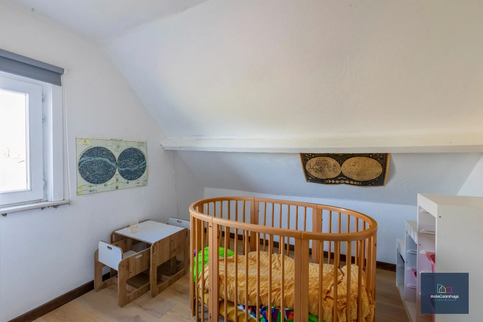 De eerste verdieping heeft een centrale nachthal die toegang biedt tot 3 slaapkamers en de tweede badkamer. De master bedroom geniet van een subliem verzicht op de velden. Via een vaste trap betreden we de zolder, ingedeeld in een vierde slaapkamer en een bergruimte.