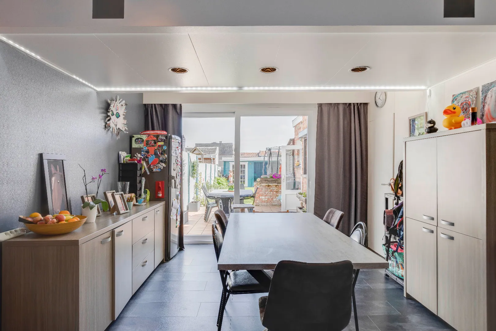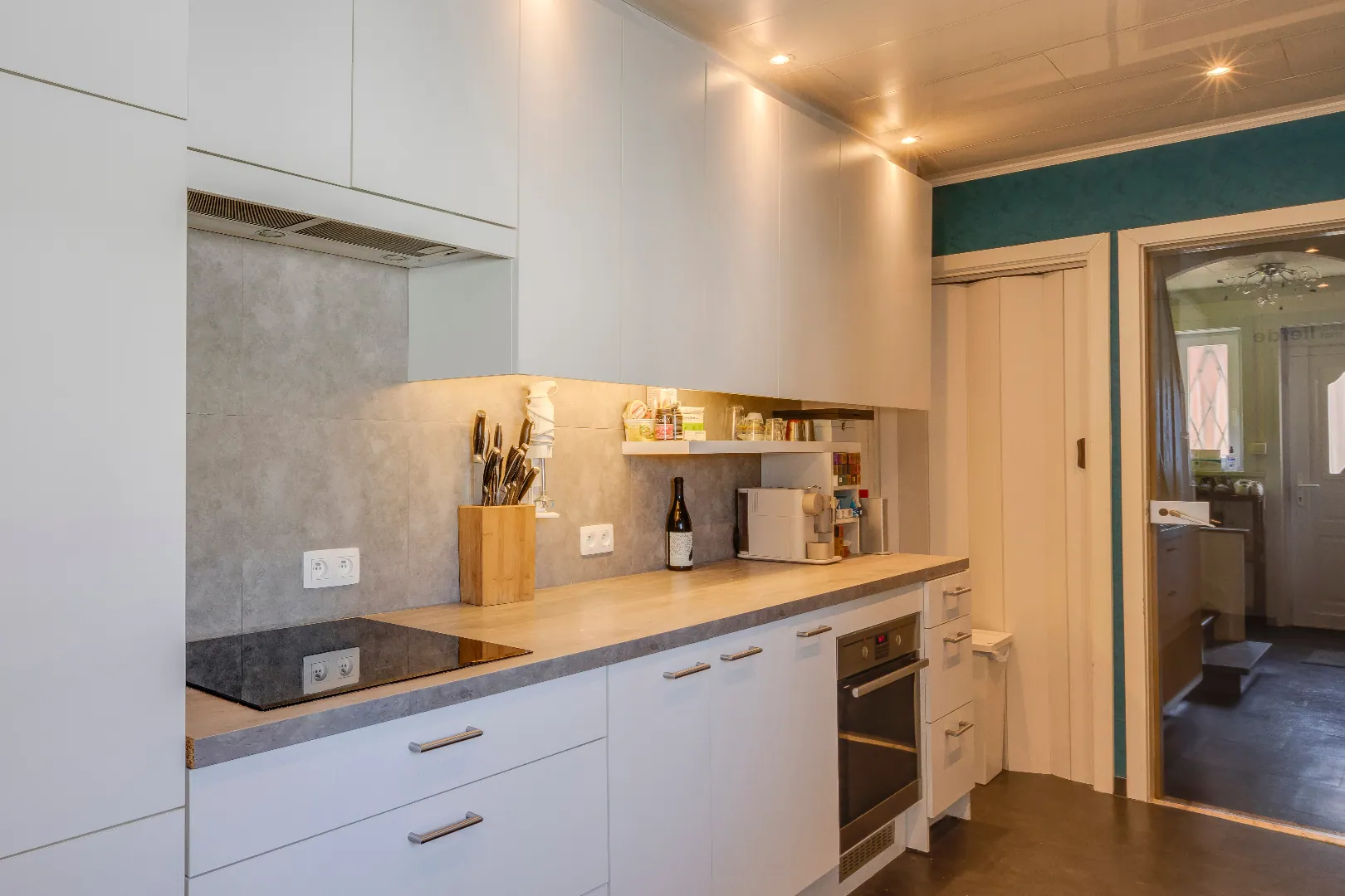 In de Spellewerkstraat ,een zijstraat van de Brugsesteenweg en de Gerard Willemotlaan (fietsstraat) te Mariakerke wordt deze kleurrijke gezinswoning verkocht. De eigendom zelf werd gebouwd op een grond van 188m² en heeft een bewoonbaar oppervlakte van 151m². Binnengekomen treffen we een ruime inkomhal aan die doorloopt naar de keuken of die ons onmiddellijk in de lichtrijke living brengt. In het verlengde van de keuken werd een toilet geplaatst en vinden we een berging terug. De toegang tot de kelder is ook te vinden in de keuken. Op het 1ste verdiep vinden we 2 ruime en 1 kleine kamer terug. Ook de badkamer met douche bevindt zich op het 1ste verdiep. Op zolder werd de masterbedroom geïnstalleerd en werd er gelet op voldoende bergingruimte. De eigendom is voorzien van een leuk terras en aangename tuin. Wensen jullie een bezoek ter plaatse, schrijf u dan snel in op onze website www.makelaarshuys.be