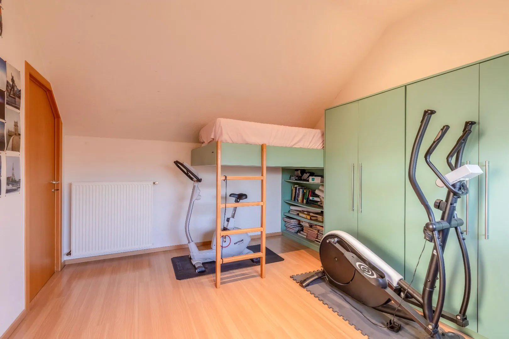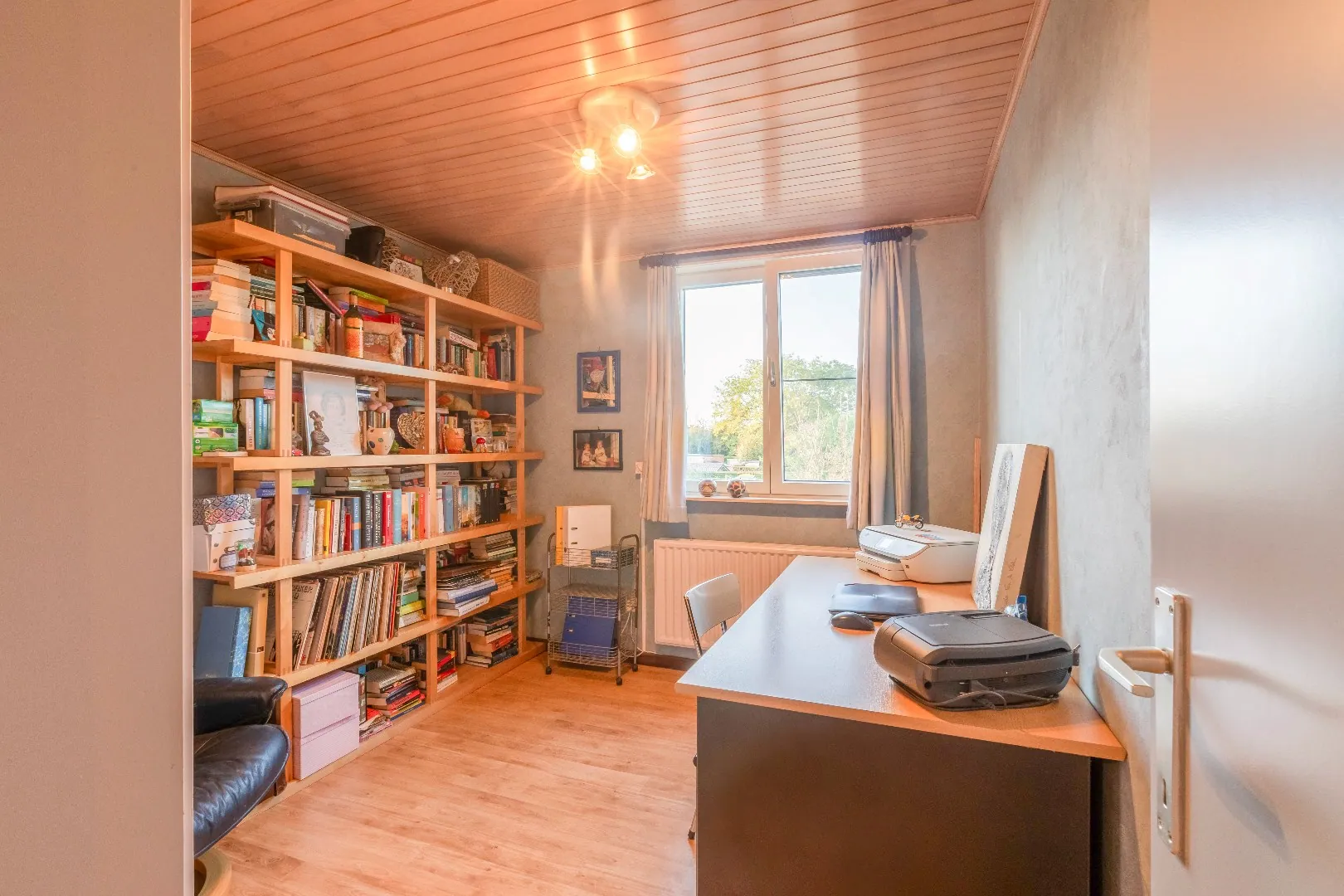 Op de 2de verdieping heeft u een vierde slaapkamer met maatwerk bureau, inbouwkasten en een slaapmeubel. Er is een opbergzolder.