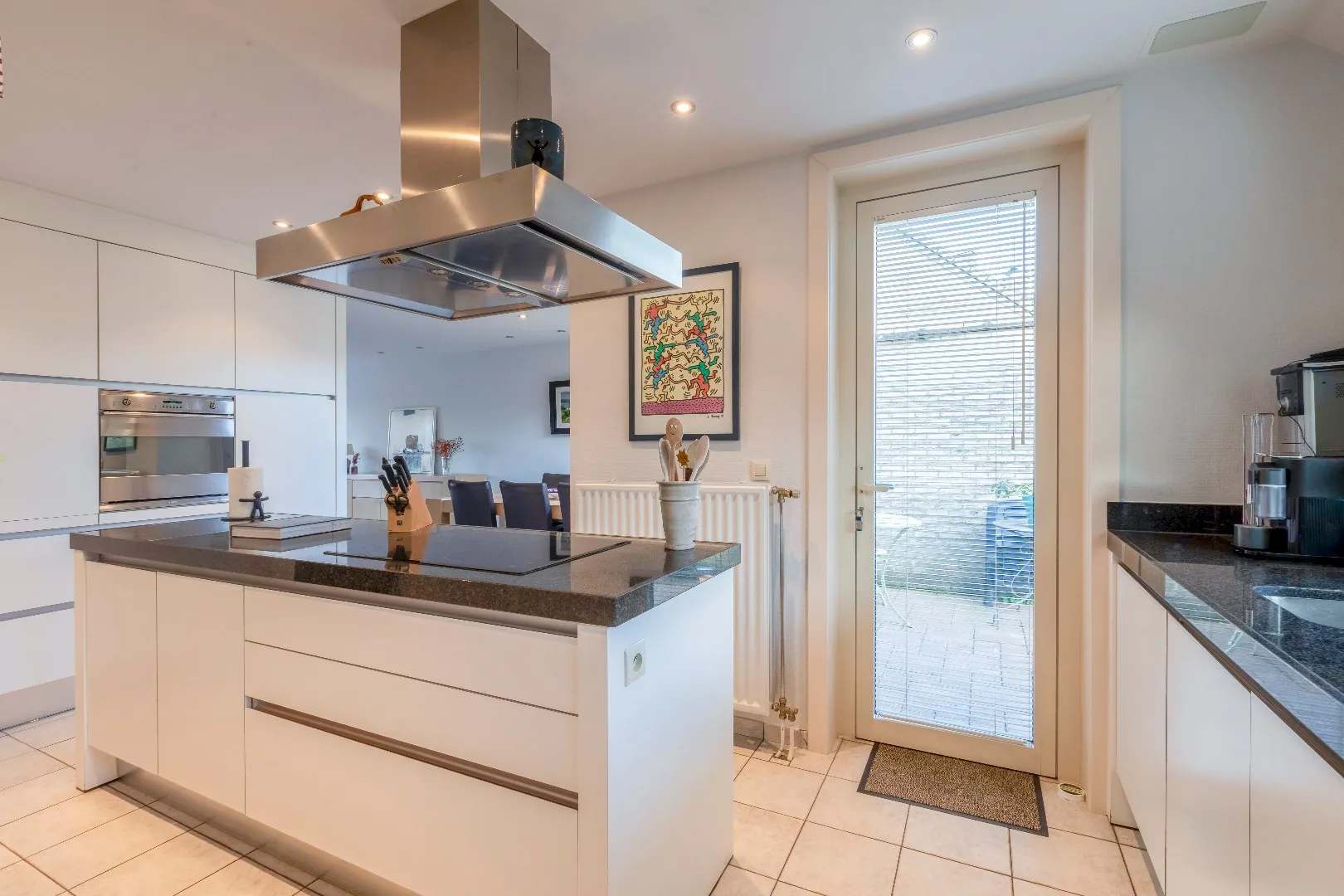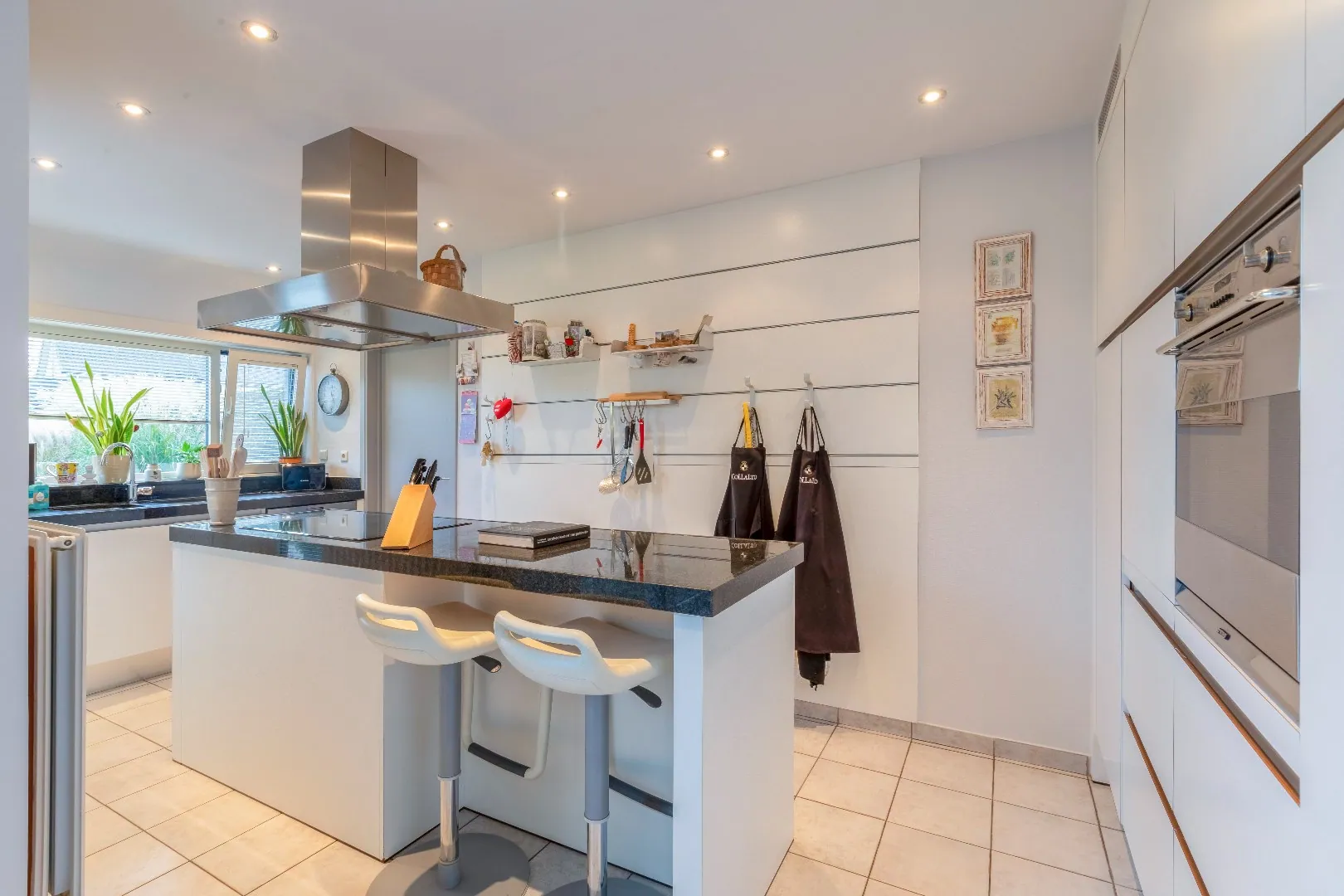 De bewoonbare opp. (169m²) is verdeeld over de inkomhal, een gastentoilet, een lichtrijke leefruimte met zithoek en eethoek .Aansluitende de duurzame en kwalitatieve design open keuken met toestellen en praktisch kookeiland met zicht en toegang tot de fraai aangelegde tuin met diverse terrassen en tuinhuis.