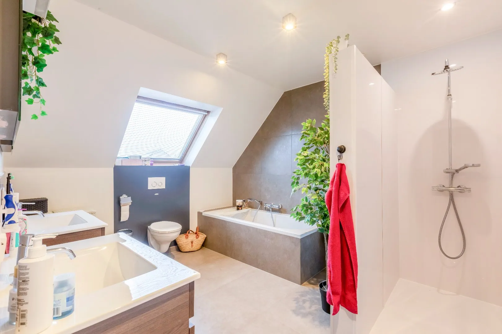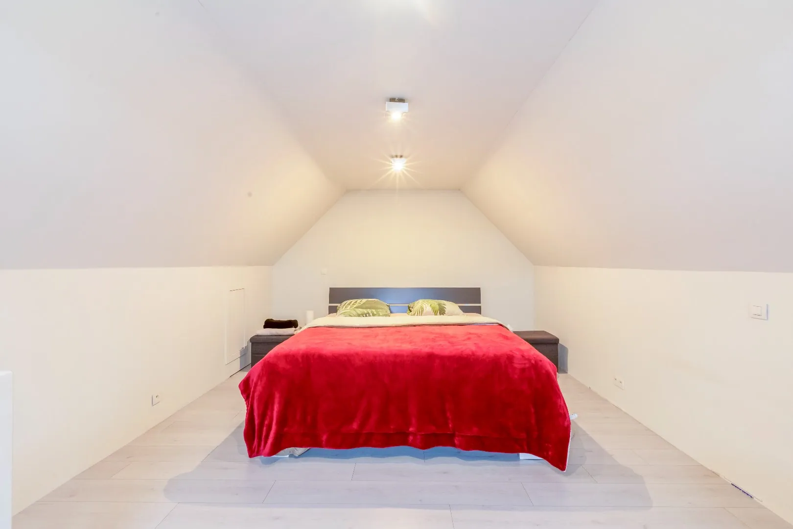 Op het verdiep zijn er 2 zeer ruime kamers, een fantastische badkamer met bad, douche, lavabo en toilet. De derde kamer werd voorzien als praktische tussenkamer tussen het 1ste verdiep en de zolderruimte. De zolderruimte is volledig ingericht als slaapkamer. De tuin werd voorzien van een ruim terras en in de tuin werd een mooi tuinhuis geplaatst. De woning is vrij bij akte (4 maanden). Het EPC is zeer gunstig en de elektrische keuring is conform. Interesse in een bezoek? Schrijf u in op het bezoekmoment. - mail me op alain@makelaarshuys.be voor het adres.