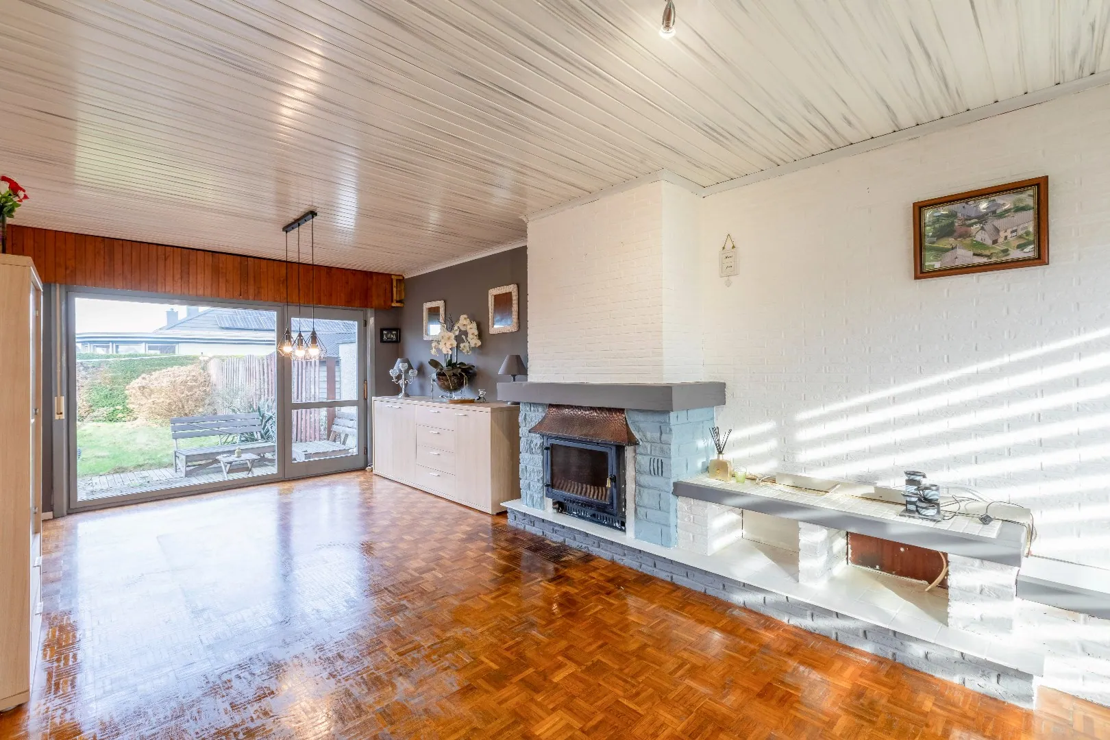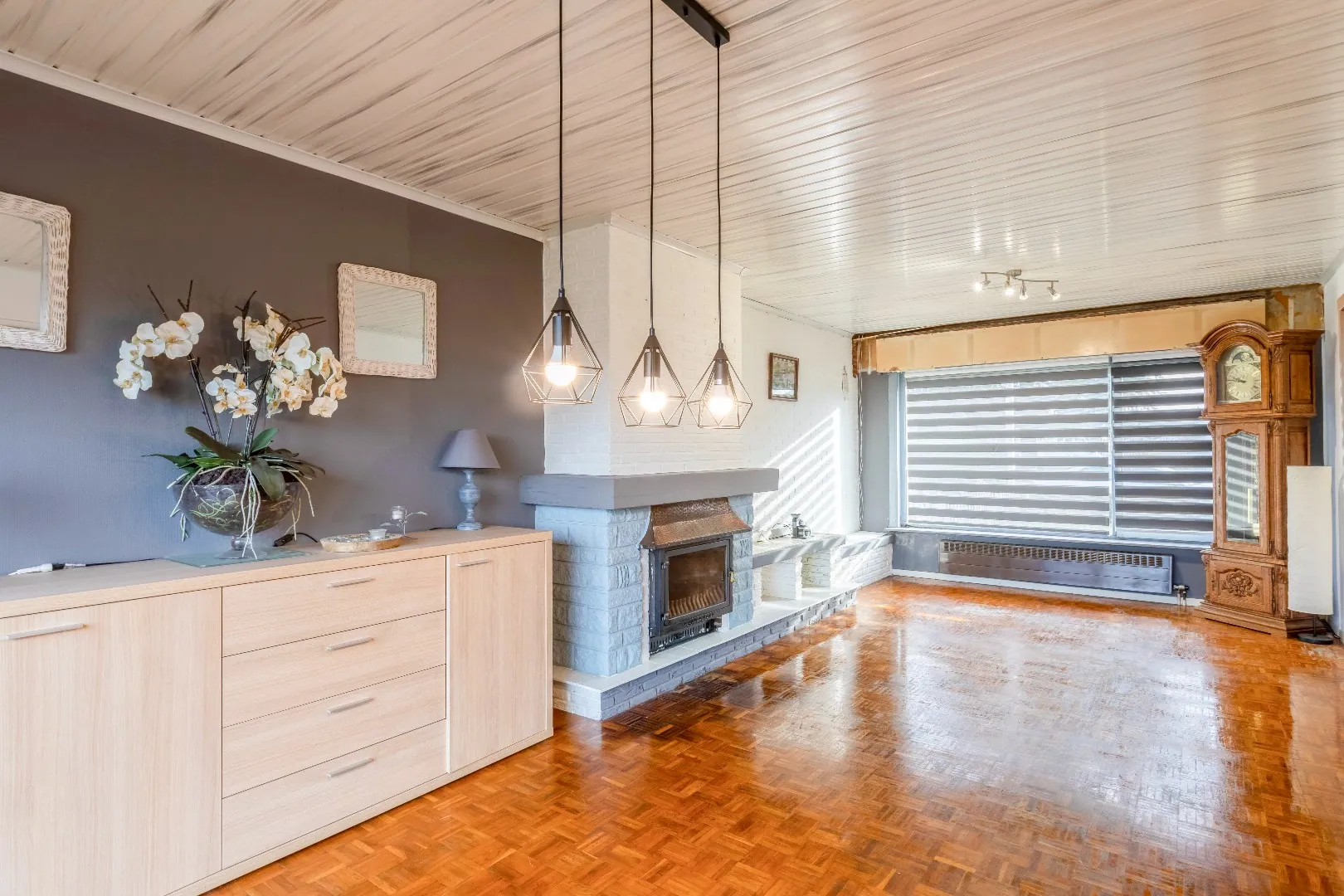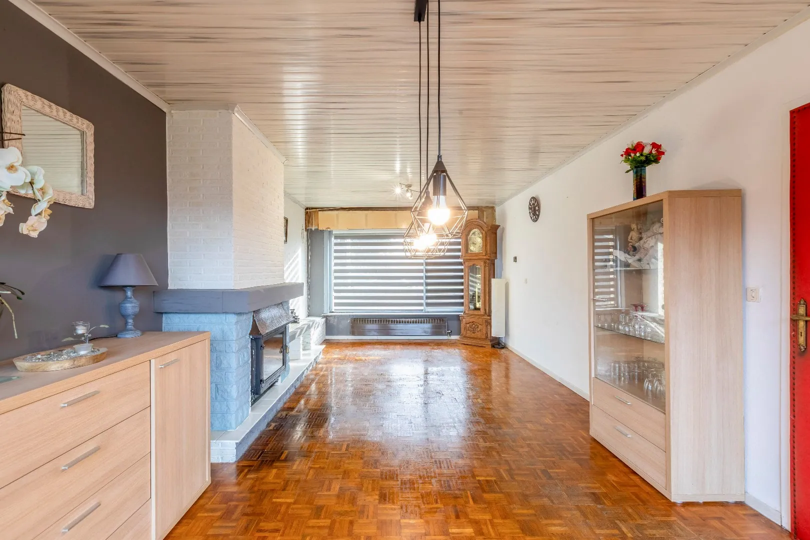 Als we verder stappen komen we in de keuken met zicht op de tuin en een ruime leefruimte met veel lichtinval. Via de leefruimte kan je ook het terras bereiken.